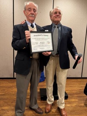 Michael Vaughan (left) receives the 2024 President's Award from current President John Nelson. The award is given to someone who contributes outstanding service to the Chapter.